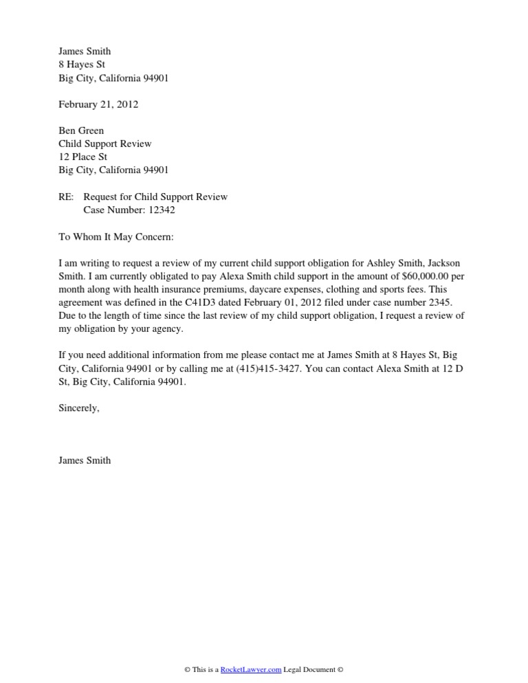 Child Support Review Letter Child Support Payments